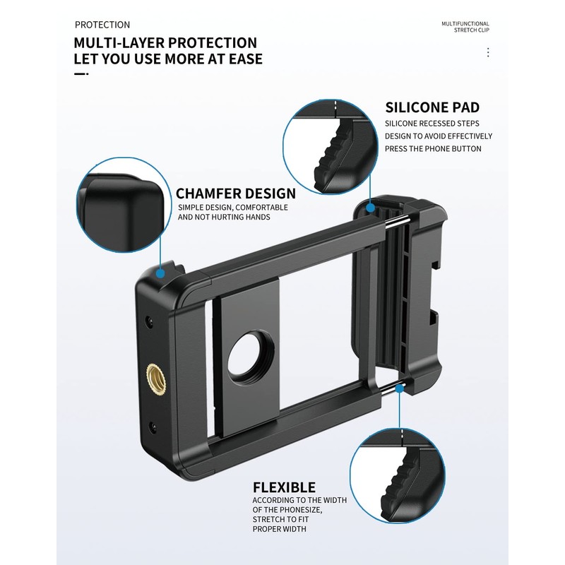 - Sturdy & Stable: The phone clip mouth position using soft silicone material, can be non-slip at the same time can also protect your phone as far as possible without being scratched, pull clip has a maximum of 6.6 pounds of clamping force, can firmly clamp your phone.
