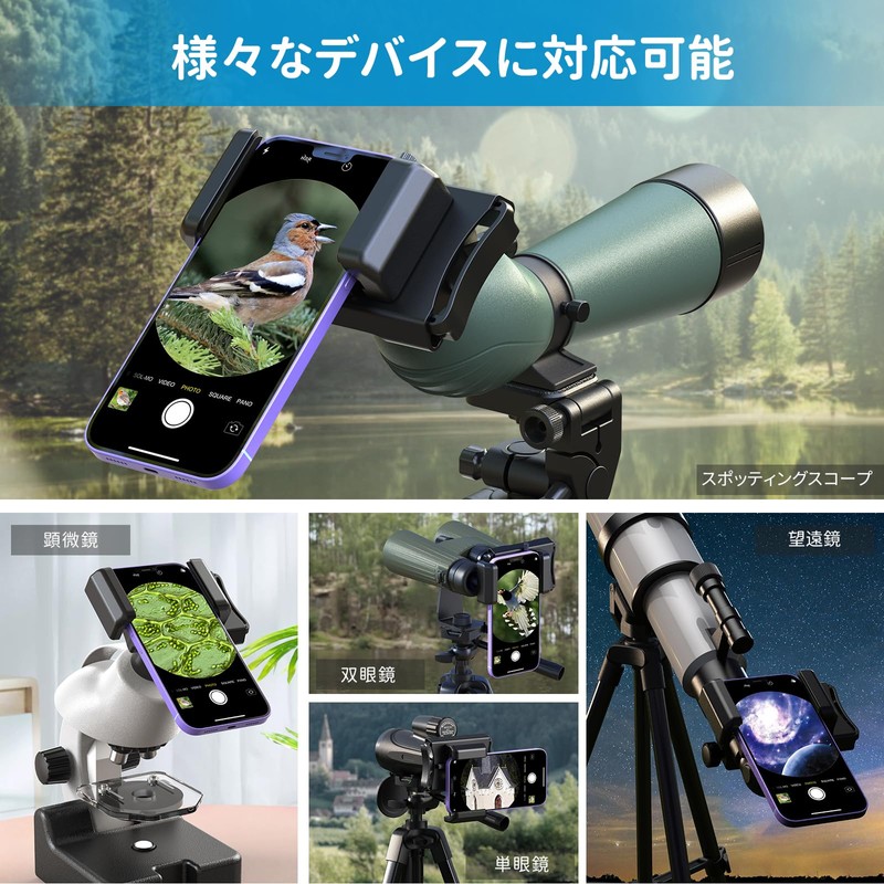 - Universal: The APEXEL shooting clip eyepiece diameter is 0.9 - 2.0 inches (23 - 50 mm). Compatible with spotting scopes, monoculars, binoculars, telescopes, astroscopes, microscopes, etc. Please note that there is a soft EVA pad, so don't worry about it being damaged or damaged to your device!