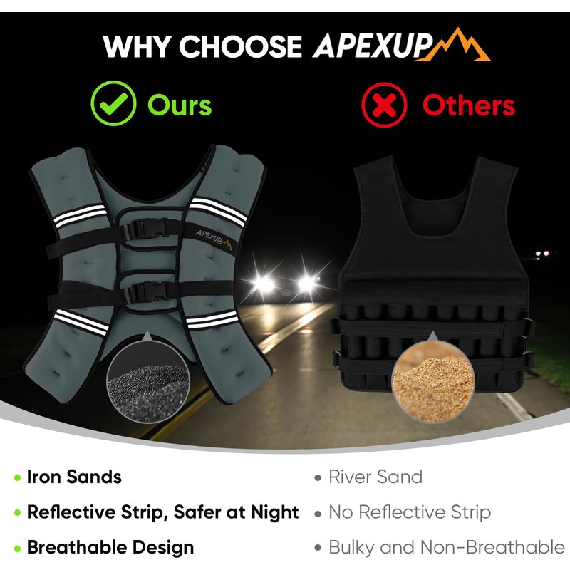 • [BOOST YOUR WORKOUT] APEXUP weighted vest is perfect for adding an extra challenge to your workout routine. The added resistance will help build strength, endurance, and improve overall fitness.