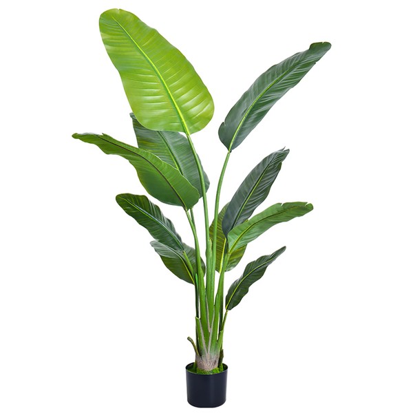 - 【Realistic Faux Tropical Plants】: Do you want some green to light and refresh your home? This artificial tree will solve your problem! Elegant Artificial Bird of Paradise tree Adopting an integrated tree stem structure with textured root design and 3D printed realistic leaves, creating a natural plant shape that brings you closer to nature. Suitable for capturing the appearance and feeling of lovely tropical palm trees anywhere. Artificial tree is green all year round.