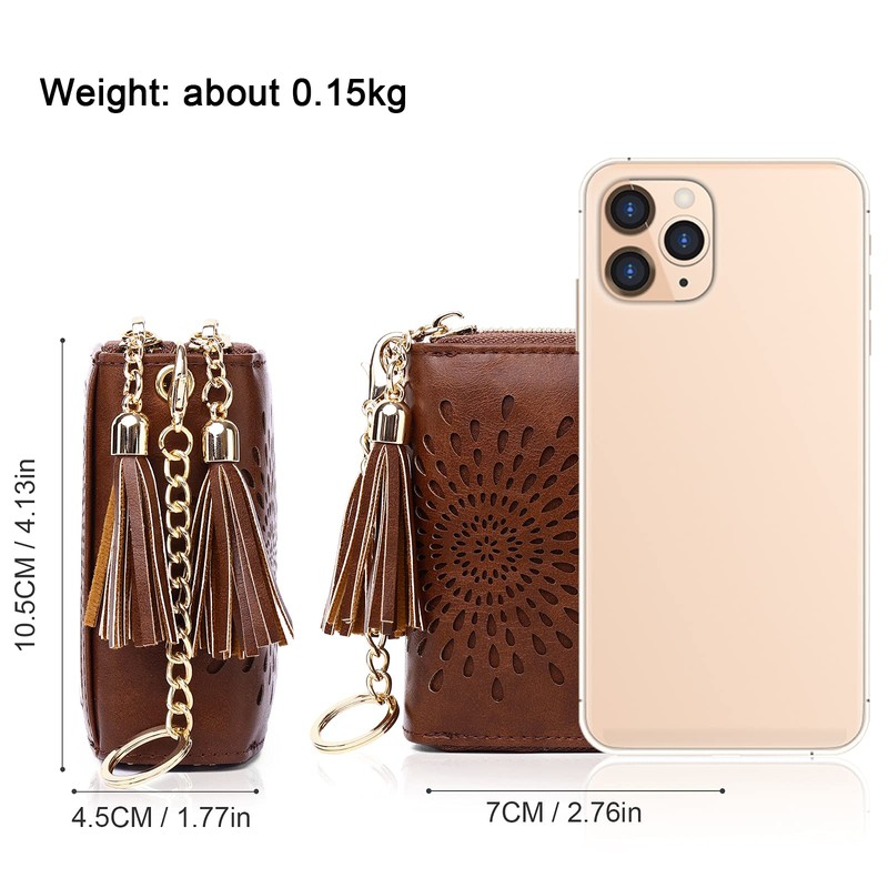 - 【Stylish & High quality PU Credit Card Holder】This double zipper card holder is Made of Soft PU leather. animal-friendly,Glossy and More tear-resistant. Unique Hollow out sunflower design, come with removable key ring, Elegant and cute, fit for Work,travel, dating, shopping, etc.