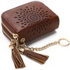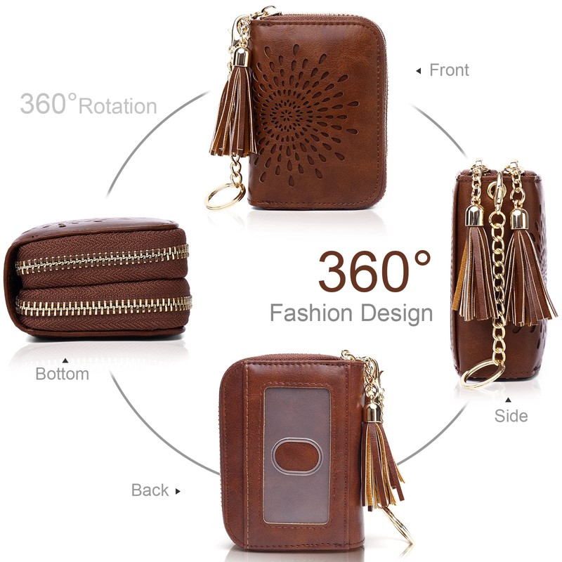 APHISON Credit Card Holder for Women RFID Blocking Card Case Ladies Small Wallets Zipper Purse 10 Slots Accordion Hollow Out Sunflower Tassels with ID Windows 1942COFFEE