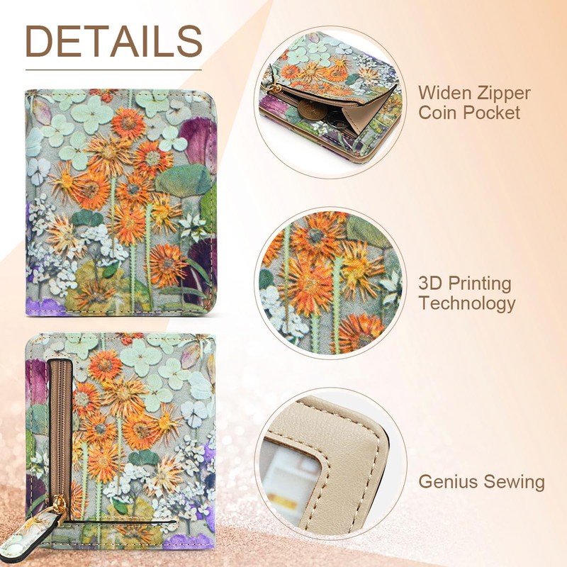 - 【Premium Material for Womens Wallet】This small ladies card wallet is made of high quality PU leather, glossy, soft, tear-resistant, lightweight and easy to clean. The small wallet for women made with upgraded zipper slide easier and more smoothly, magnetic buckle button and elegant & unique hollow out sunflower design is fit for work, travel, dating, shopping, etc.