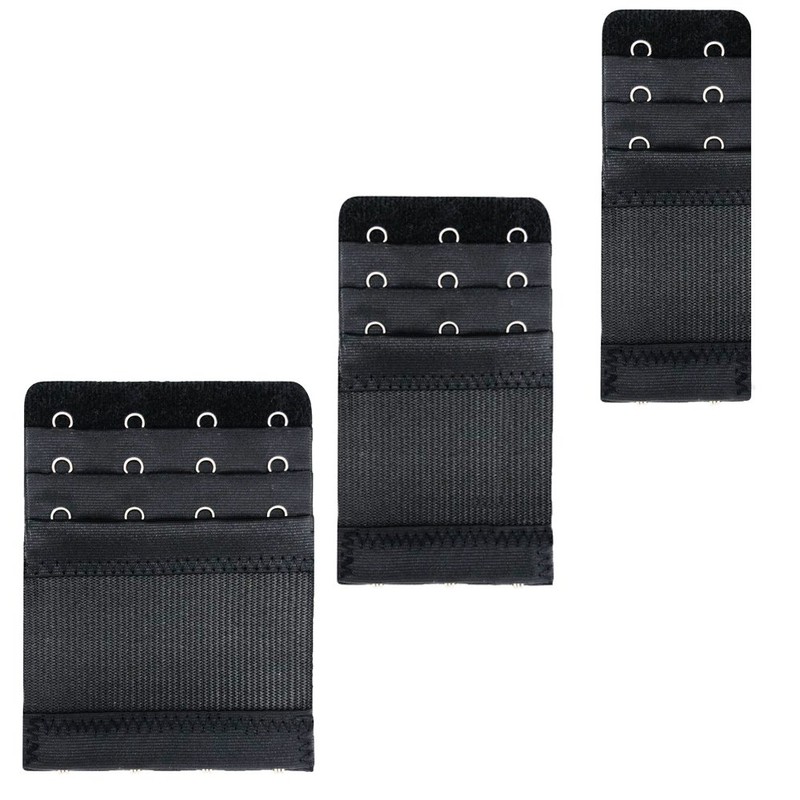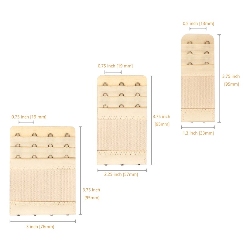- VARIOUS SIZES AND HIGHLY STRETCHABLE: this set of bra hook straps is available in different sizes, with elastic strap, highly stretchable to 5.2 inches in length, suitable for most people, useful if you are in-between sizes. 4 hook:3.8 inches in length, 3 inches in width. 3 hook: 3.8 in length, 2.25 inches in width. 2 hook:3.8 inches in length, 1.3 inches in width.