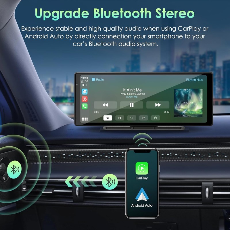 APHQUA 10.26" Wireless CarPlay Car Stereo with 1080P Backup Camera, Portable Car Radio with Wireless Android Auto, IPS Touchscreen, Voice Control, Bluetooth, CarPlay Navigation, AUX/FM