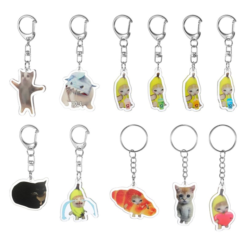 - 【Feature Cat Meme Appearance Set】You will receive A complete set of 11 pieces cute Crying Banana Cat Keychain Set Keychain in different styles, Look at their aggrieved little expressions, who doesn’t like them!