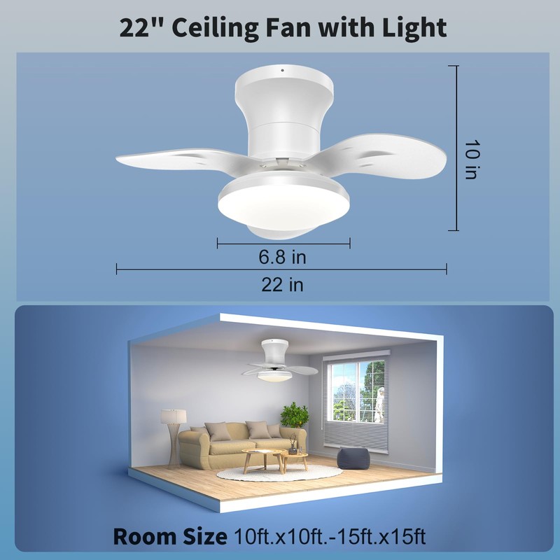 - Mini Ceiling Fan with Large Air Volume:The diameter of this small ceiling fan is only 22 inches, which is very space-saving, but the propeller design of the fan blade makes it easy to move a lot of air.