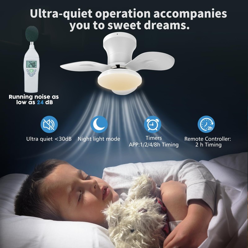 - Ideal Bedroom Ceiling Fan for Elderly and Children: With the function of 2h timing setting and night light mode, this quiet ceiling fan with lights remote control is the perfect flush bedroom ceiling fan for the elderly and children sleeping