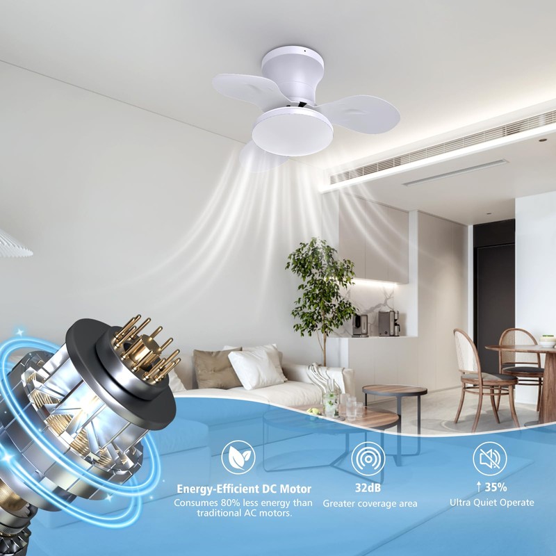 - Quiet & Energy-Efficient DC Motor: Aphyni 22 inch ceiling Fan Lights with a high-quality DC motor. This ceiling fan operates at a whisper-quiet <35dB, making it perfect for light sleepers. The reversible motor allows you to switch between downdraft mode in summer for cooling and updraft mode in winter for improved air circulation, saving energy year-round.