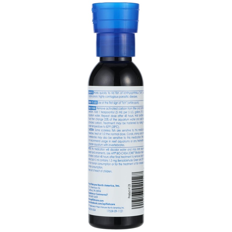 - Contains one (1) API LIQUID SUPER ICK CURE Freshwater and Saltwater Fish Medication 4-Ounce Bottle