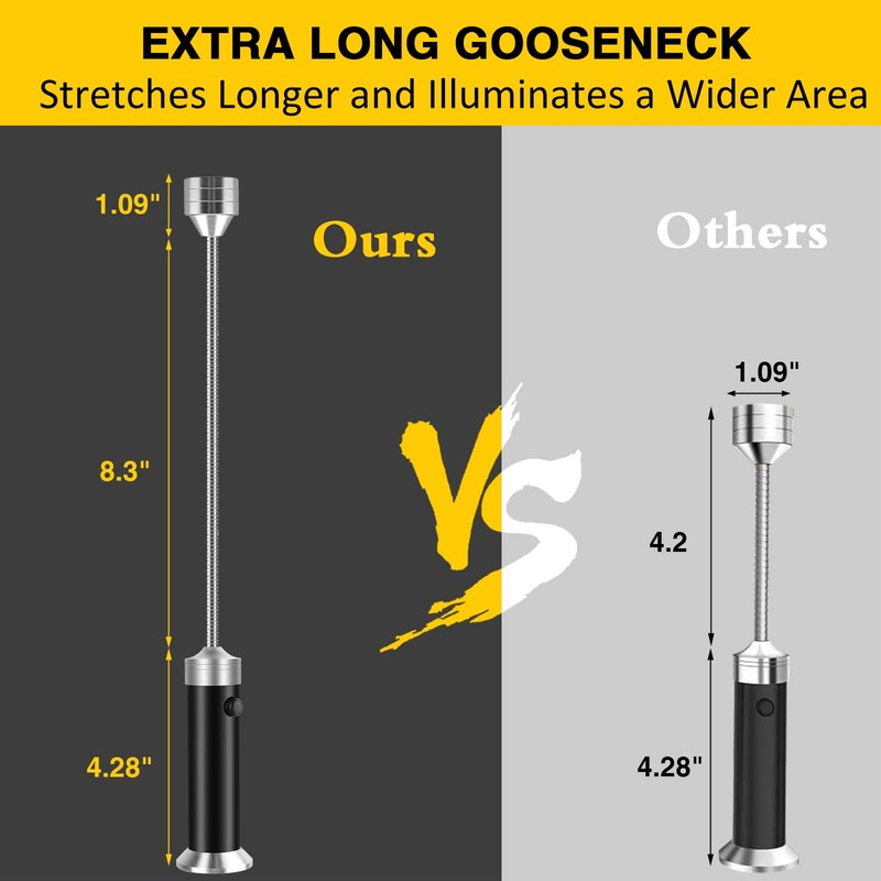 - Extra-Long & 360 Adjustable Gooseneck - The gooseneck of this bbq light is adjustable 360 degrees, and you can adjust it to any angle you want. Just all for your convenience. At the same time, we lengthened the gooseneck of the grilling light to 8.3', twice as long as the old version, so that you can adjust a broader range.