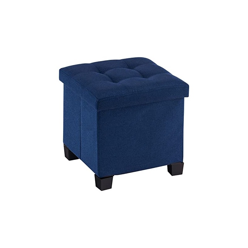 Apicizon 15 inches Small Storage Ottoman Cube, Foot Stool Foldable Storage Boxes with 4 Plastic Legs for Living Room Bedroom, Blue