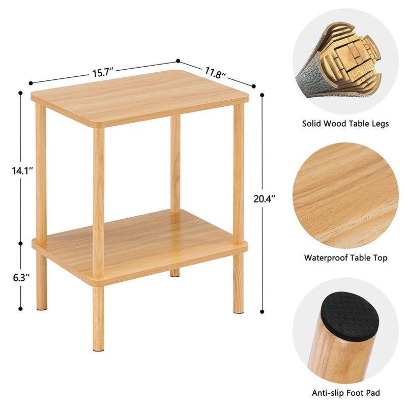 Apicizon 2 Tier End Table, Boho Side Table with Storage Shelf, Nightstand Bedside Table for Small Spaces, Bedroom, Living Room, Entryway, Farmhouse, Easy Assembly, Natural
