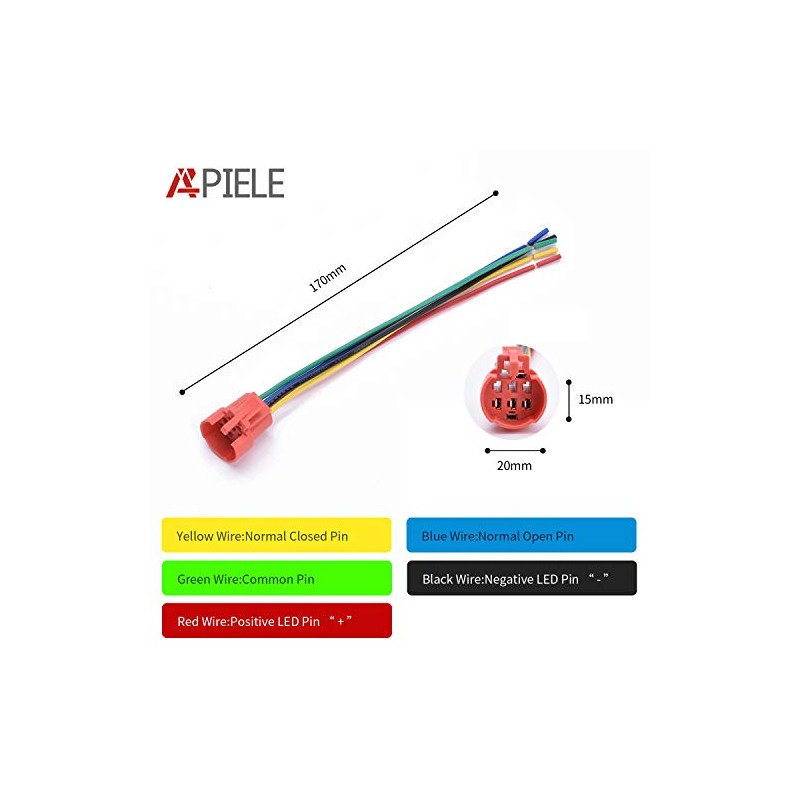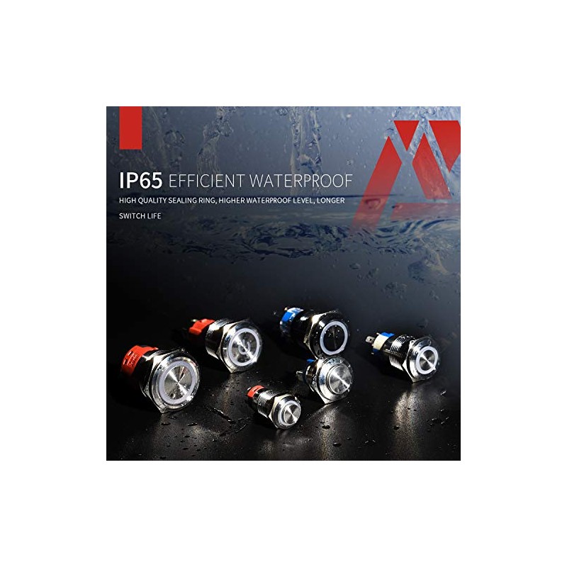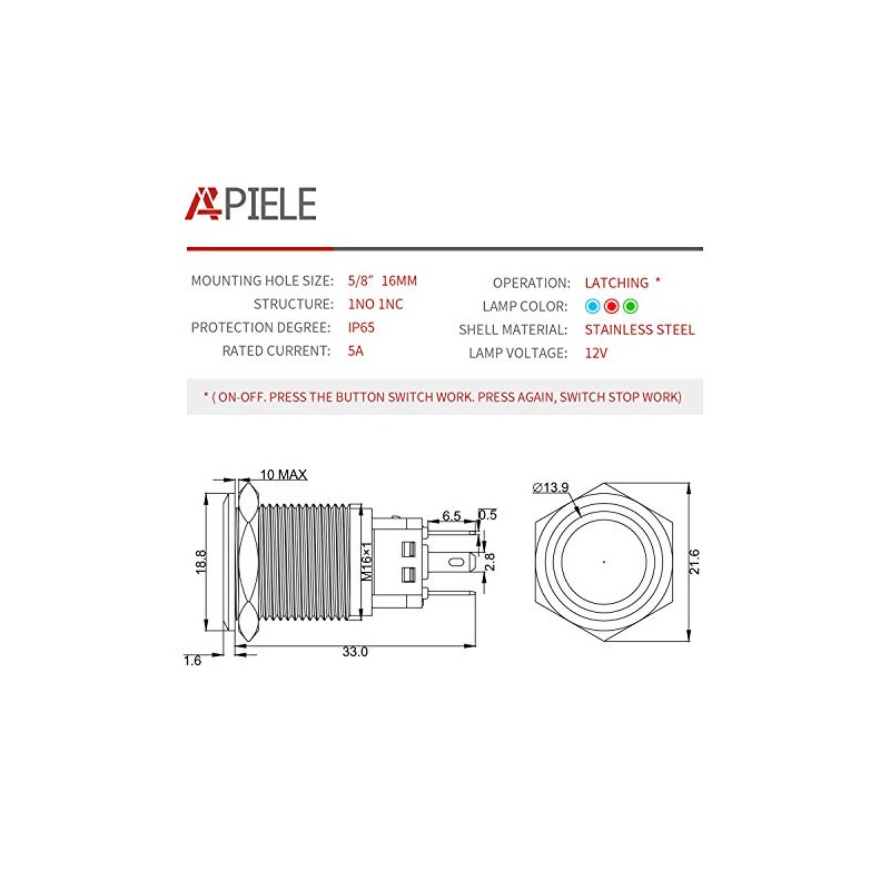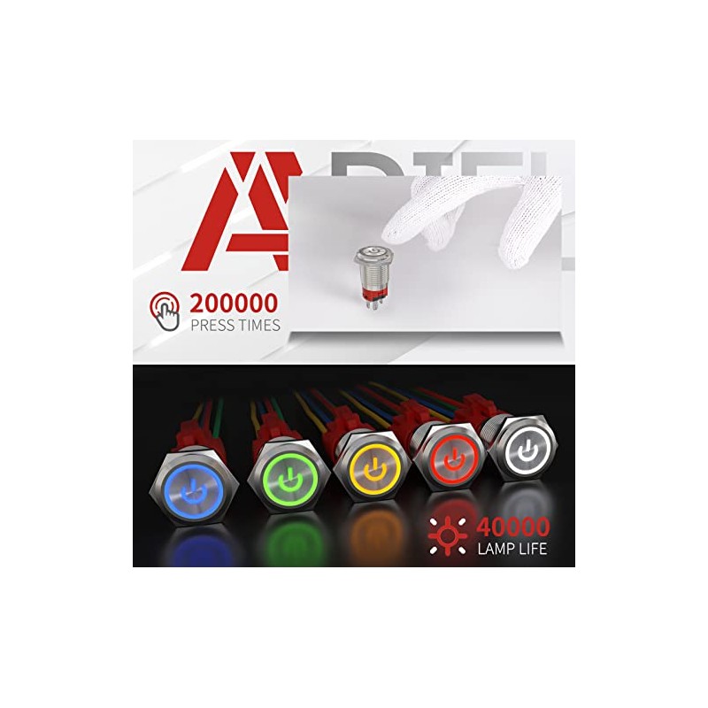 APIELE APIELE 16mm Latching Push Button Switch 0.63" 12V Power Symbol Ring Led Car Metal with Socket Plug 1NO1NC SPDT ON/Off (Red/Silver Shell)