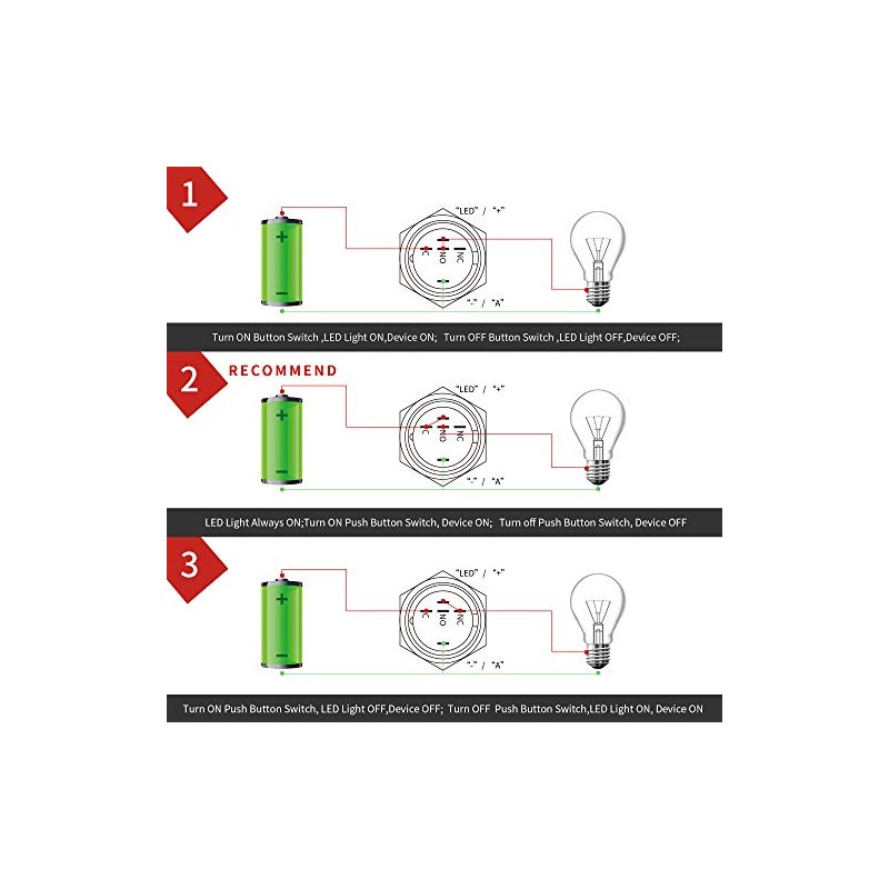 - Latching switch: Push it, ON; Push it again, OFF. Contact Configuration: 1NO1NC