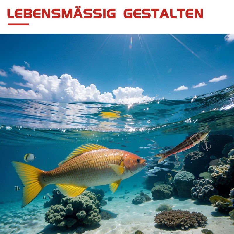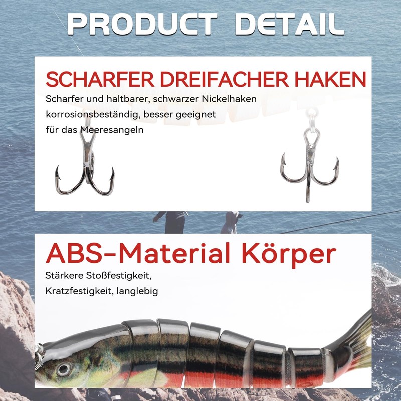 - komplizierte Konstruktion: Dieser Köder ist mit 8 flexiblen Gelenken ausgestattet. Jeder Teil ist präzise mit hochfesten und langlebigen Verbindungsgurten zusammengebaut. Das Gelenkdesign nimmt eine fortschrittliche mehrachsige Verbindungsstruktur an, die hervorragende Freiheit und Flexibilität bietet und mehrere Winkel in komplexen Umgebungen erreichen kann. Flexible Bewegung, problemlos mit verschiedenen rauen Szenarien umgehen.