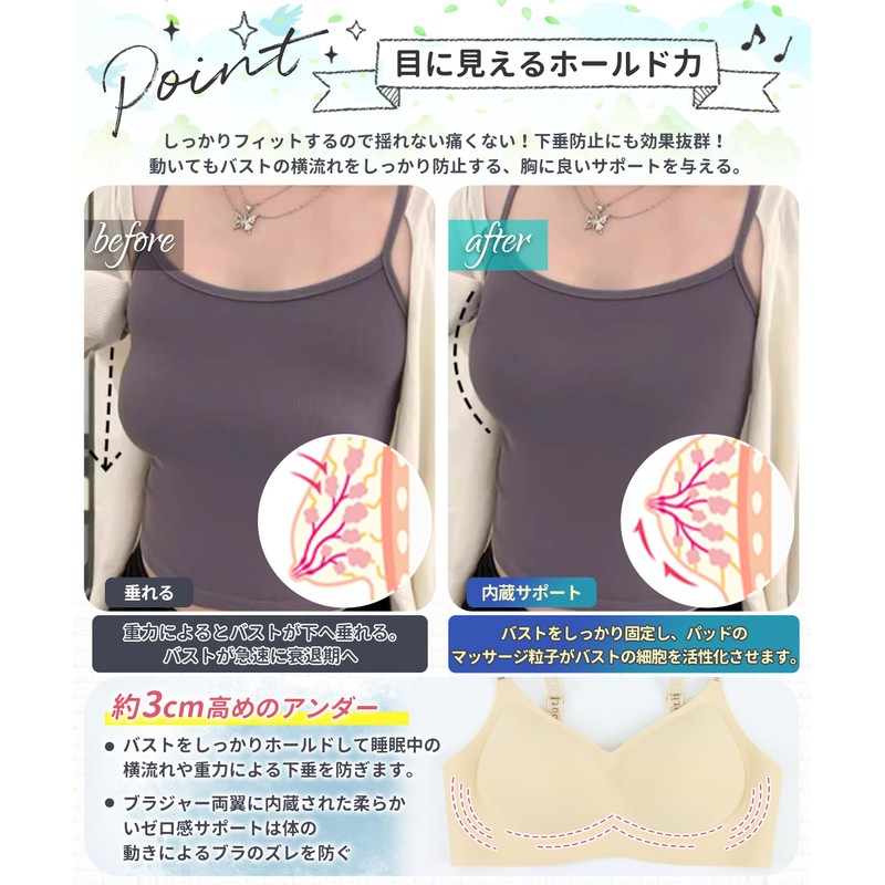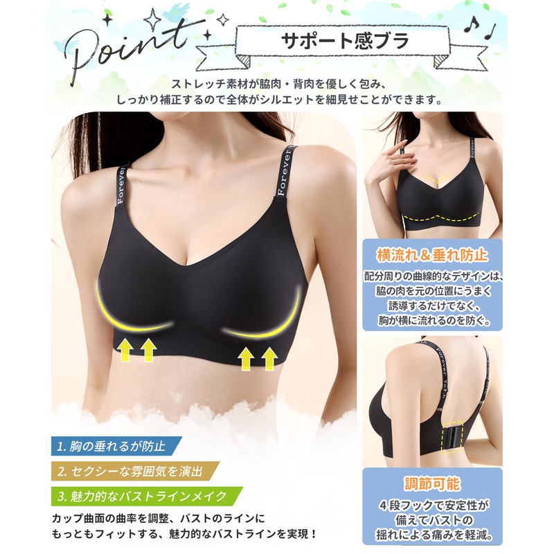 - Designed to support a mysterious chest from underneath: Many of the bras that claim to prevent sagging of the breasts, are made with a compression that prevents the bra from sagging, so the bust is forced and difficult to wear. APIKIE (Soft Feeling) Bra is 1.2 inches (3 cm) tall underwire and bra wings with soft zero feeling support prevents the bra from slipping due to body movements, and firmly holds your bust and prevents dropping caused by gravity