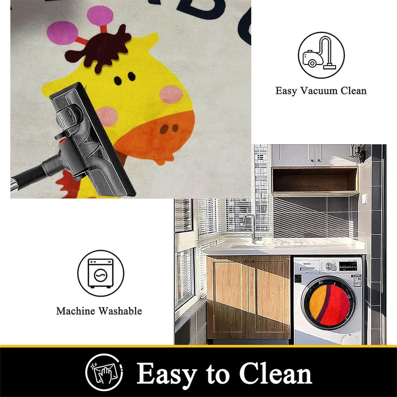 - Easy to Care: The alphabet rug is easy to clean, you can not only use vacuum cleaner, broom, or wipe for daily cleaning, but also can use washing machine or rinsed with the hose for a deeper cleaning. It's best to wash in cold water without adding bleach. Easy to maintain a new look. Vacuum regularly, Minimal effort, Maximum beauty!