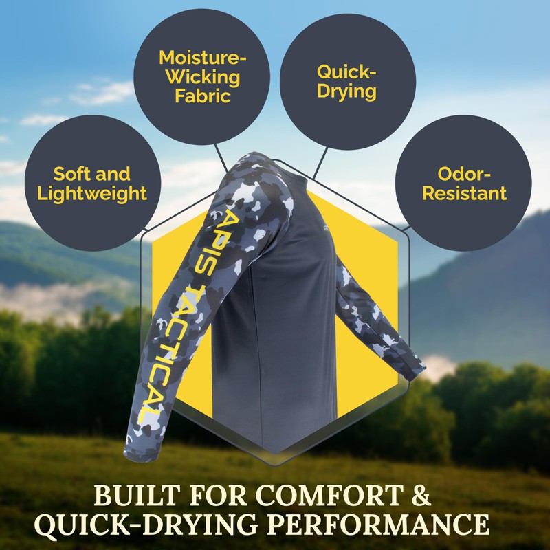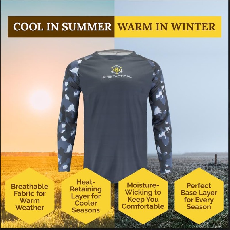 Apis Tactical - All-Season Base Layer - Mens Undershirts for Beekeeping & Outdoors - Moisture-Wicking Long Sleeve Undershirt for Hiking, Skiing, & More - for Men & Women - Dark Grey/Grey Camo - XXL
