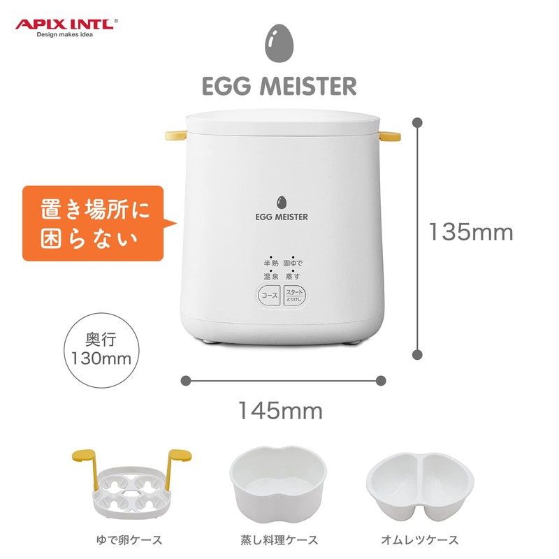 Apix Boiled Egg Maker, Egg Meister, Functional Renewal Product, Easy Button Operation, Hot Spring Eggs, Soft Boiled Eggs, Hard Boiled Eggs, Salad Chicken, Omelets, Steamed Cooking