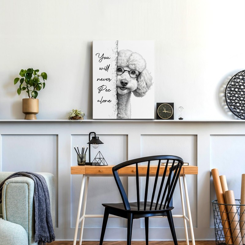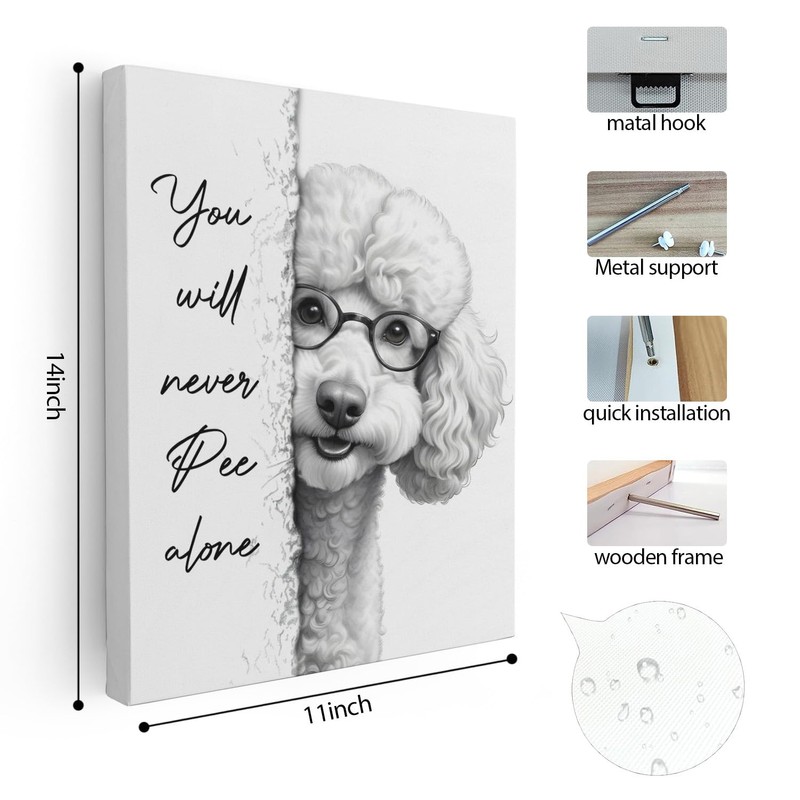 APJYM Doodle Dog Wall Art, You Will Never Pee Alone Funny Poodle Bathroom Decor, 11x14 Inch Framed