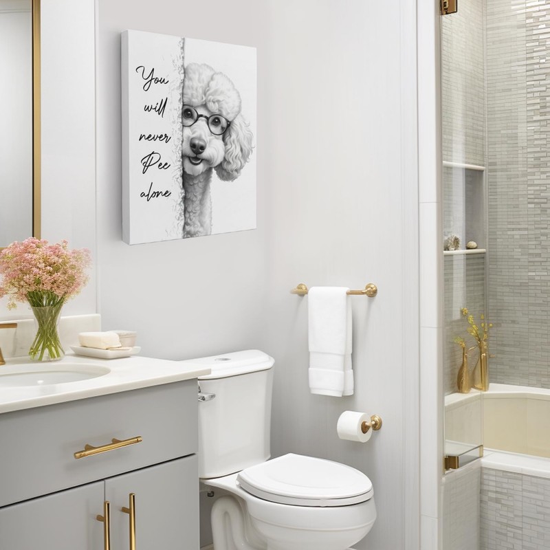 APJYM Doodle Dog Wall Art, You Will Never Pee Alone Funny Poodle Bathroom Dec...