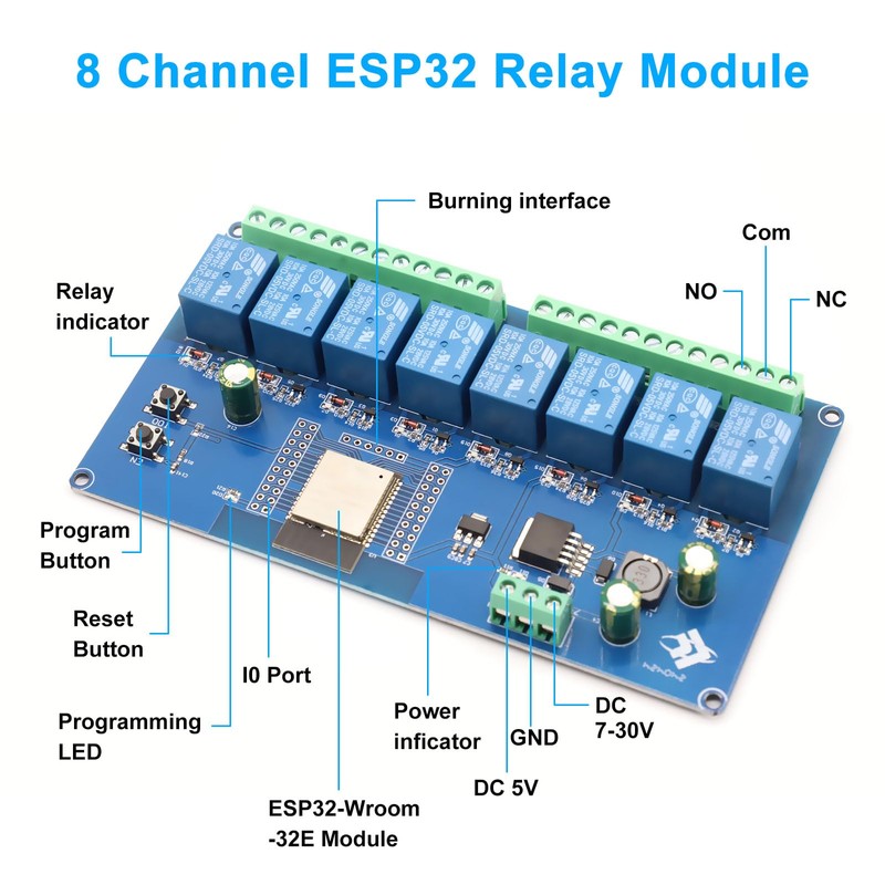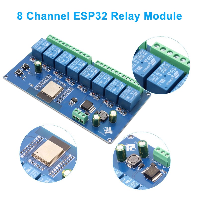 - 【Versatile Communication】: ESP32 8-channel relay development board supports WiFi and BLE for seamless wireless connectivity, perfect for versatile projects.