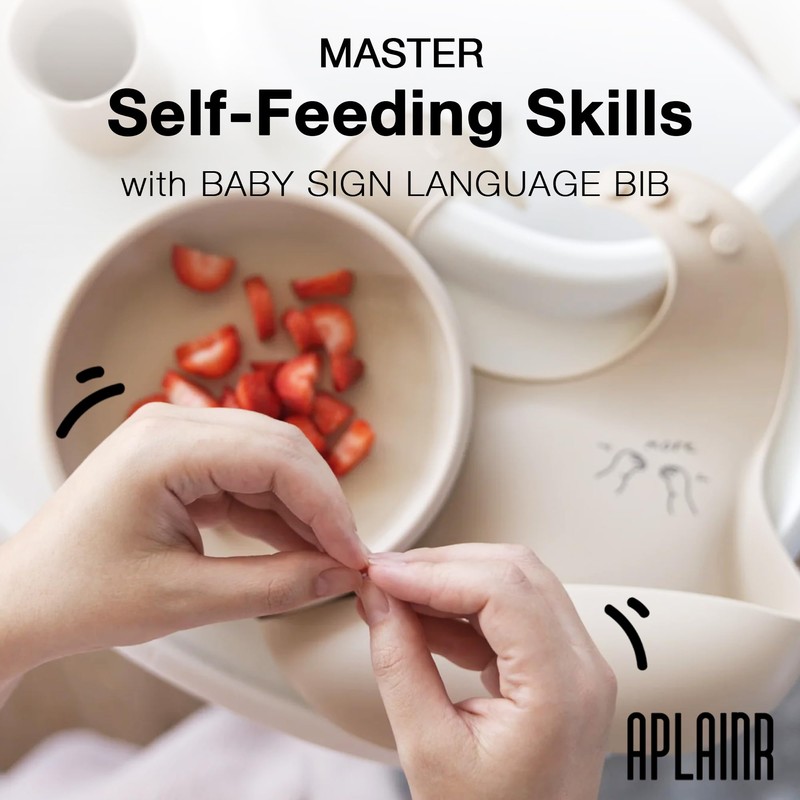 Aplainr Baby Sign Language Bibs help parents promote language development in their little ones from an early age. With adorable baby sign language (BSL) graphics, Aplainr BSL Bibs remind parents to communicate with their baby during mealtimes and teach them the basic yet essential mealtime signs including “more” and “all done”. Made out of 100% premium food-grade soft silicone, Aplainr Bibs help your little one master self-feeding skills safely while you can enjoy complete peace of mind at your dinner table.