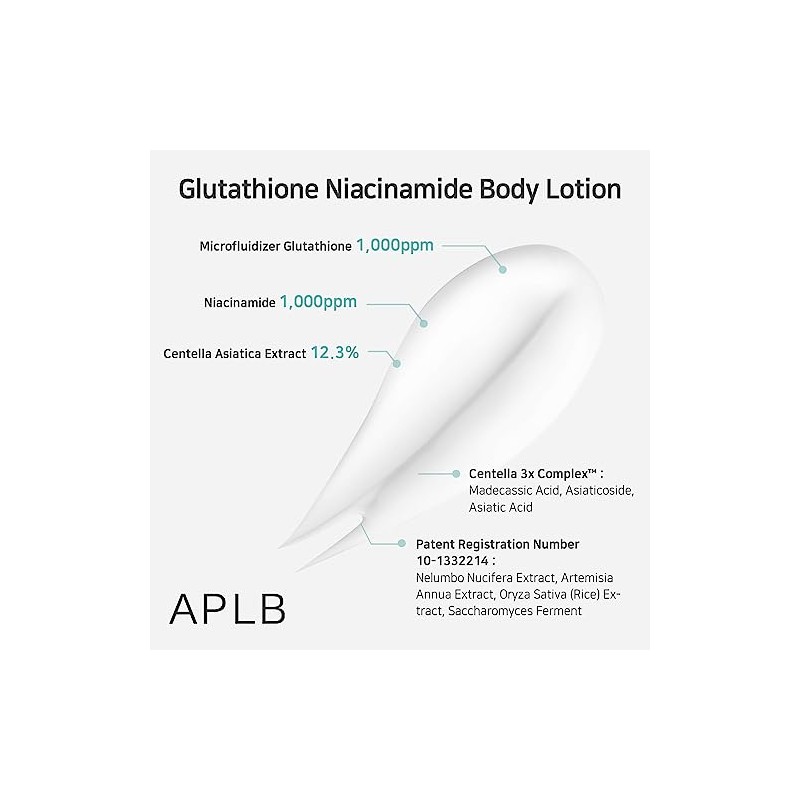 APLB Glutathione Niacinamide Body Lotion LIPO GLUTA NIAC CEN 12.5 10.14 FL.OZKorean Skincare, Long lasting hydration, Revitalize for gentle and...