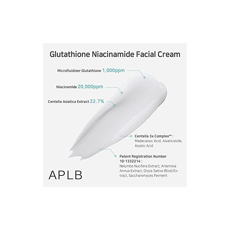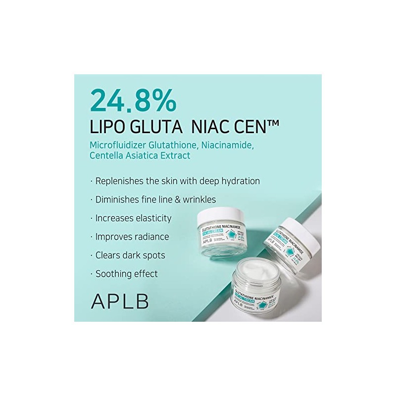 APLB Glutathione Niacinamide Facial Cream LIPO GLUTA NIAC CEN 24.8 1.86 FL.OZ Korean Skincare, Deep hydration through Niacinamide, Improve skin...