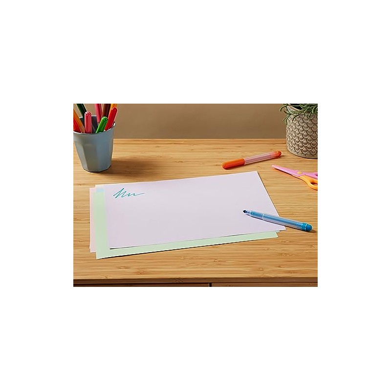 Packung mit 80 g/m² A4-Papier und verschiedenen Pastelltönen: Elfenbein, Rosa, Pastellblau, Pastellgrün und Lavendel. Jede Packung enthält 100 Blatt (20 Blatt/Farbe). Hochwertiges, homogenes getöntes Papier, ideal für Schule, Büro und Zuhause. Geeignet für Inkjet, Laserdrucker, Kopierer oder Handschrift.