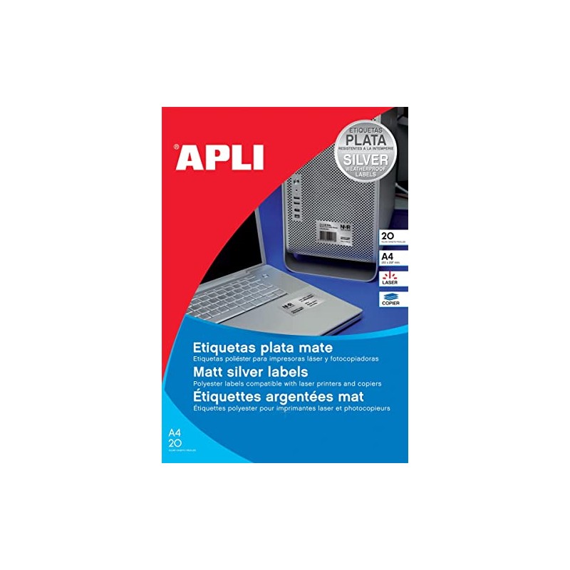 APLI Typenschild-Etiketten, silber, Polyester, wetterfest, für Laser und Kopierer Etikett A4 LK Poly.wetterf.si 20St PERMANENT