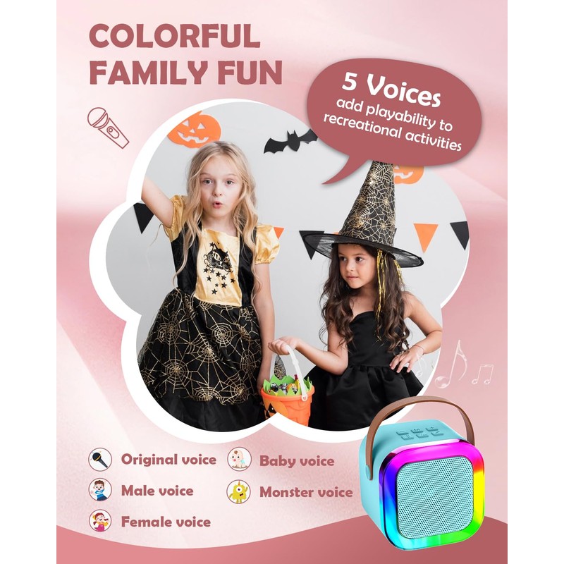 - 5 magische Stimmen und attraktive Lichter: Dynamische Disco-Beleuchtung schafft ein immersives Karaoke-Erlebnis, mit unabhängigen Tasten zum Wechseln der Lichter, endlose Unterhaltung für Ihre Kinder. Eingebaute 5 magische Stimmen: Monster, Baby, Frau, Mann, Original/Begleitung. Magische Stimmen begleiten die Lieblingslieder. Werden Sie zu jeder Zeit zum Star der Party.
