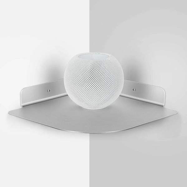 aplslpa 8" Floating Corner Shelf, Metal Corner Shelf Wall Mount for Wall Storage, for Smart Home, Speakers, Internet Router, Security Camera - for Bathroom, Kitchen, Bedroom, and Living Room (Silver)