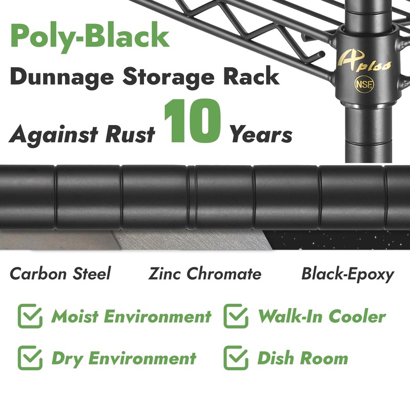 - Durable Construction: Our shelving unit is made with high-quality galvanized black epoxy resin, ensuring long-lasting durability and resistance to rust and corrosion in both dry and moist environments.