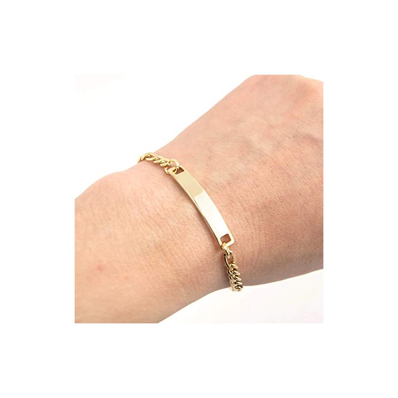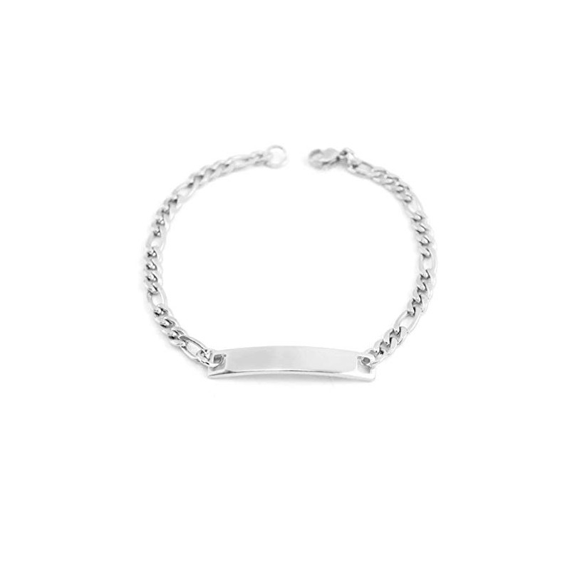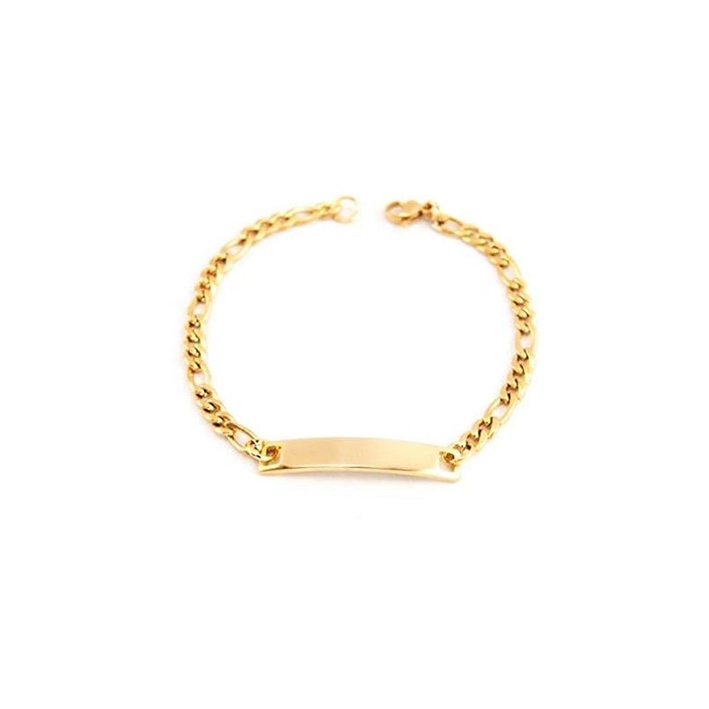 aplusashop ID Figaro Girl's Friendship Bracelet with Engraving in Gold or Silver, Stainless Steel, Without Stone