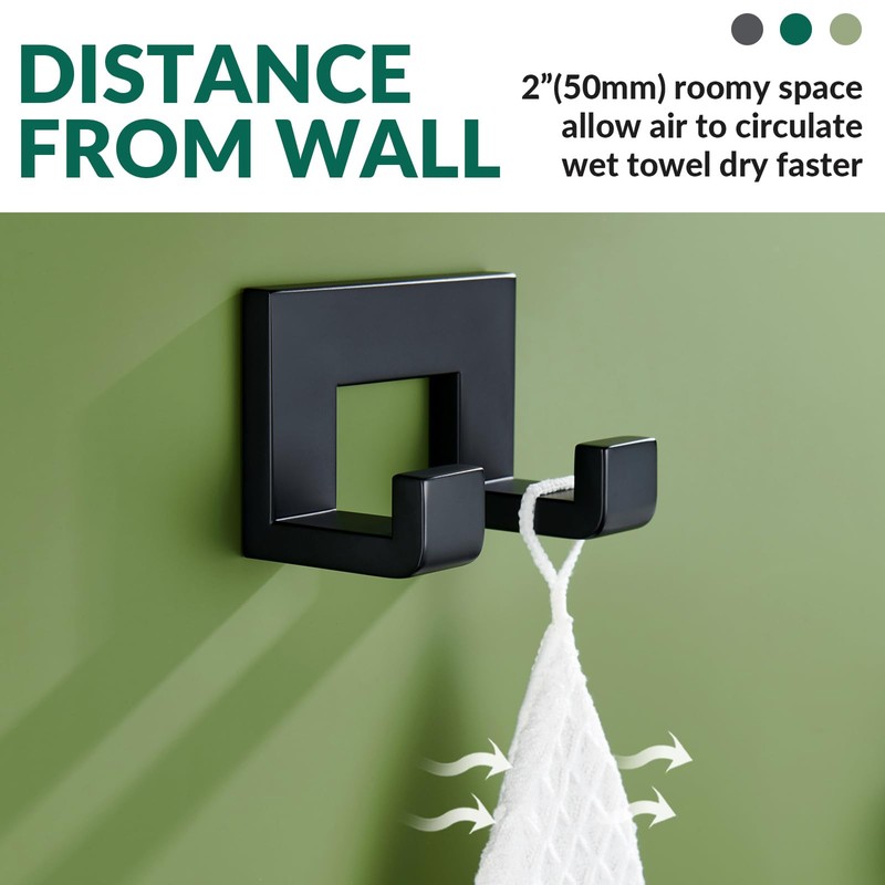 APLusee Double Robe Towel Hook Matte Black, SUS 304 Stainless Steel Square Du...
