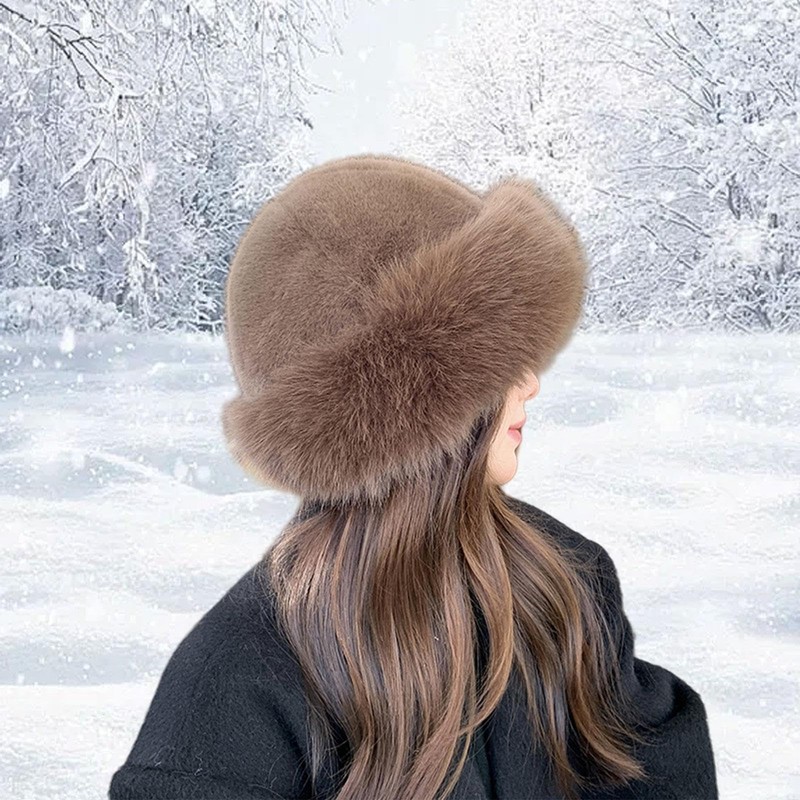APLVFFZH Women Winter Faux Fur Hat Female Cossack Hat Russian Hat for Camping Snow, brown