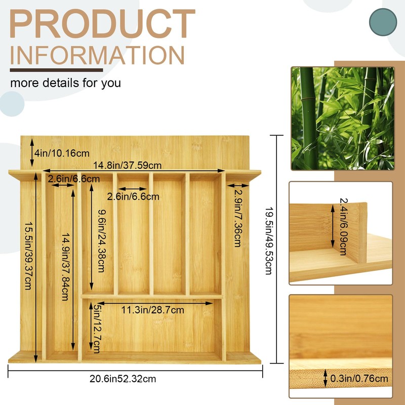 - CUSTOMIZABLE: The bamboo kitchen drawer organizer can be easily cut to fit the size, the flatware drawer organizer matches the cabinets and looks custom-made, and the wooden silverware tray for drawer can be cut to fit your drawers perfectly according to specific needs.