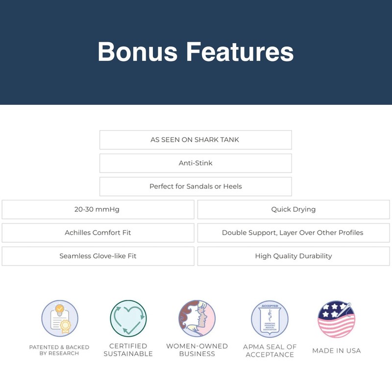 - TARGETED COMPRESSION: The Joule are patented barefoot compression ankle socks that offer 20-30 mmHg which is optimal to increase circulation and enhance recovery. Perfect for arch support, ankle stability, plantar fasciitis, tendonitis, EDS, sever's disease, and many more.