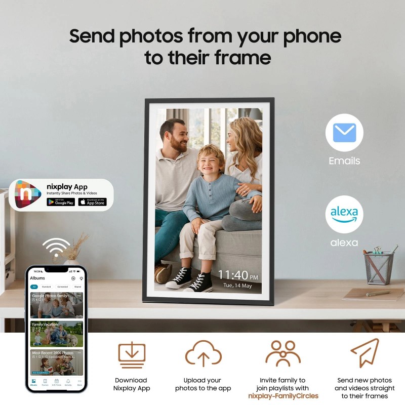 Setup is As Easy As 1-2-3 - With the Nixplay app (available for Android and iOS), you can invite multiple users to upload photos to the frame. You can even connect multiple digital picture frames to the app to share precious moments across devices. Nixplay also supports logging in via the desktop web app or emailing photos directly to the frame. With this digital picture frame, you can keep a rotating collection of photos and videos going all day long!