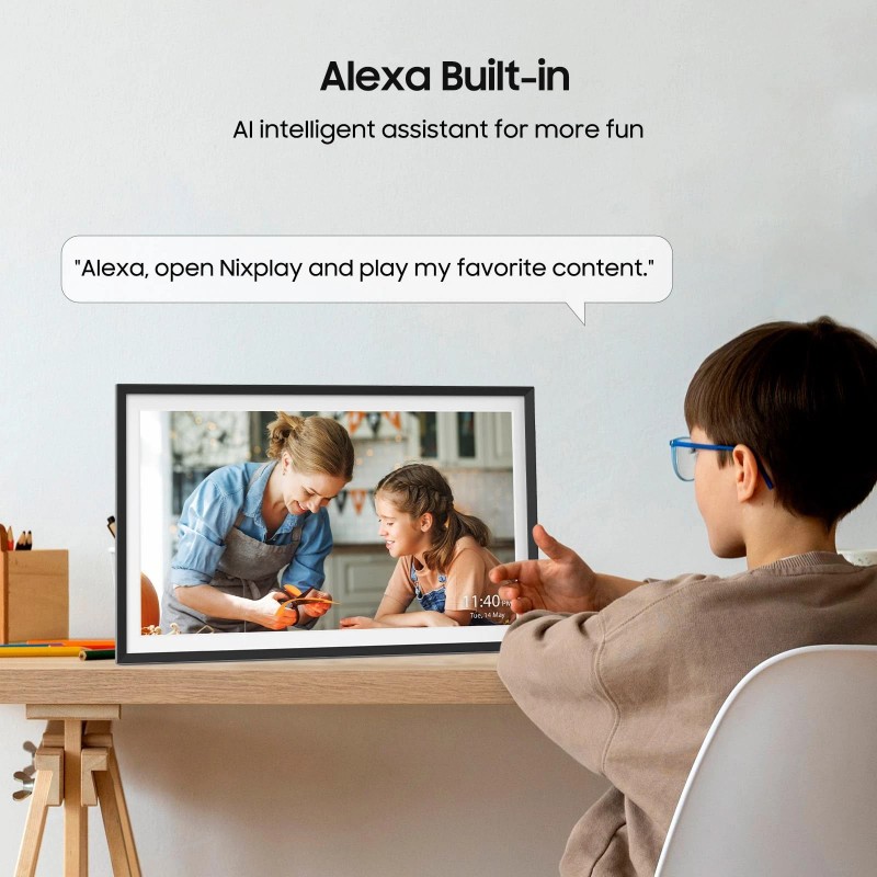 Personalized Design & Smart Sound Sensing - Whether wall-mounted, on a desktop, in portrait, or landscape, you can easily place the frame in your preferred position, and the content will auto-rotate accordingly. Nixplay-SenseMe is a smart sensor that wakes up your frame when you are in the room and puts it to sleep when you are not. Works with Amazon Alexa - just ask your ApoloSign WiFi digital photo frame for the playlist you want.