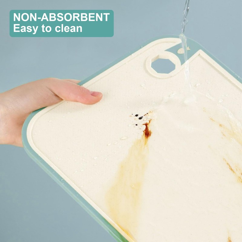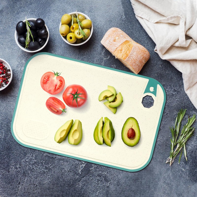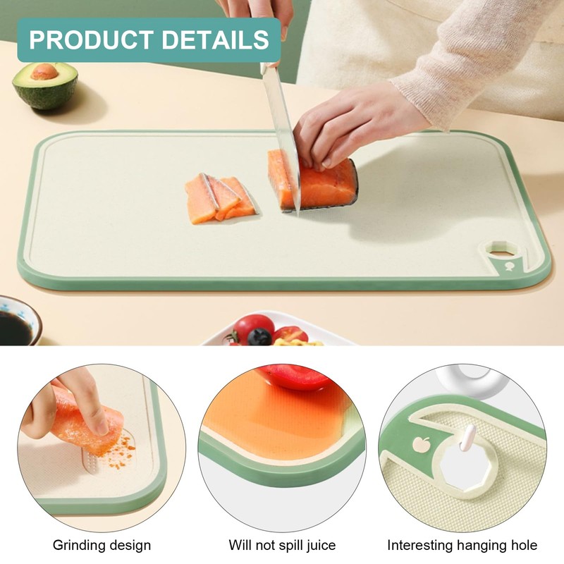 - 【Doppelseitiges Schneidebrett】Dieses kunststoffbrett hat ein verdicktes Design, beide Seiten können zum Schneiden von Lebensmitteln verwendet werden, Sie können rohe Lebensmittel, gekochte Lebensmittel und Fleisch auf einer Seite schneiden, und die andere Seite kann verwendet werden, um Gemüse, Obst, Brot usw. zu schneiden, ein Brett kann für mehrere Zwecke verwendet werden, um die Kücheneffizienz zu verbessern.