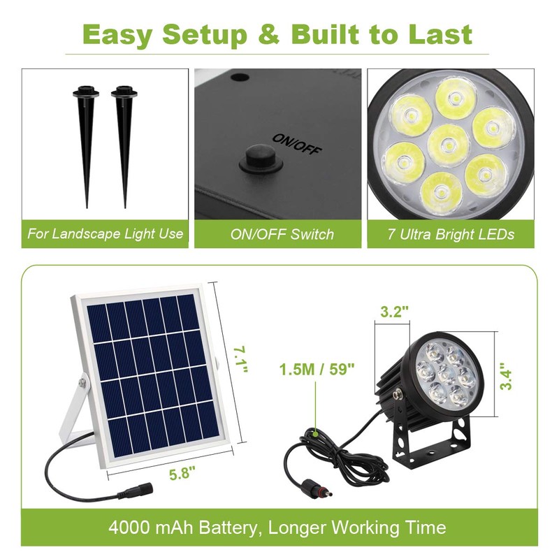 - Solar flag pole light outdoor dusk to dawn shines at two different brightness settings using 7 LED bulbs. High brightness continuously lasts for 6 hours and low brightness for 12 hours