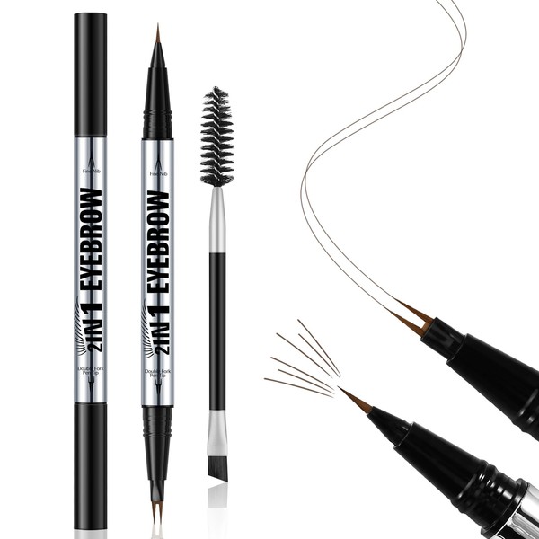 Apooliy Waterproof Eyebrow Pen, Dual-Ended 2 Forks Microblading Brow Pen and Brush Set, Ultra-Precise Liquid Eye Brow Pencil, Eyebrow Makeup Pencil for Women