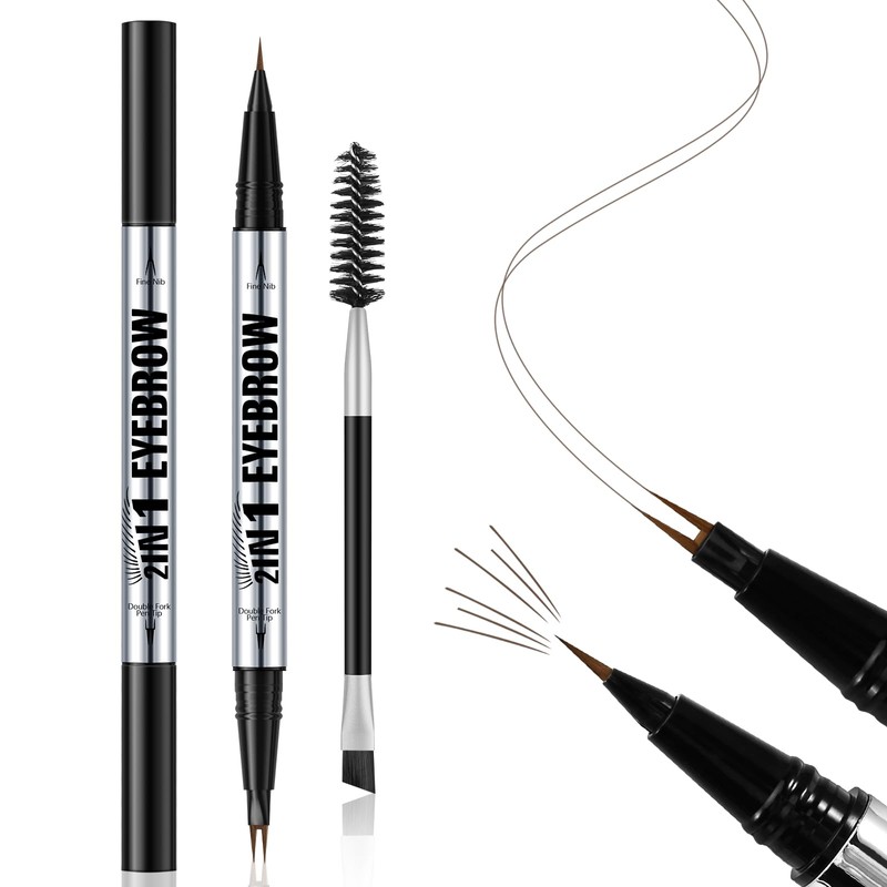 - 【Dual-Ended Design】:This dual-ended eyebrow pen features a micro-fork tip that quickly fills in sparse areas and blends color into brows,an ultra-fine tip that draws in tiny hairs that look like natural, real brows,and a dual-ended brush - one end for smudging and the other for perfecting details,Easily draw 3D, natural-looking brows.