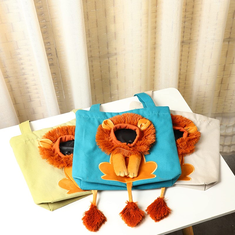 apott Dog Tote Bag with Zipper Cat Shoulder Carrier Lion-Shaped Pet Canvas Bag for Daily Use Walking Travel (S, Light Green)