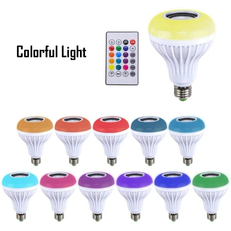 Wireless Bluetooth LED Light Speaker Bulb RGB E27 12W Music Playing lamp Remote