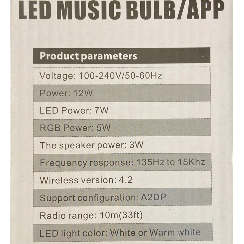 1x 12W Bluetooth speaker LED bulb
