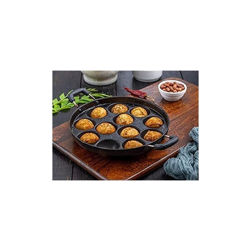 - Non Stick Appam Pan 12 Pits with Plastic Scrubber and Wooden Stick and Black Notch(Lid)